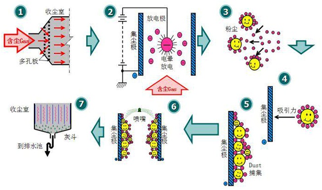 1、濕式電除塵器的工作原理: