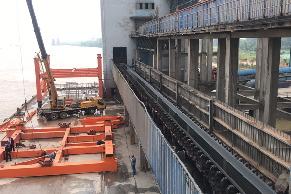 我公司于2019年1月與江蘇船港物流有限公司簽訂港口干散貨卸料物流中轉項目設備一批,2019年4月15日我公司安裝人員已正式進入現場進行安裝,為保證業主單位的生產進度及港口卸船機與帶式輸送機的協同生產,我公司安裝人員在現場加班加點,目前現場已初具規模。