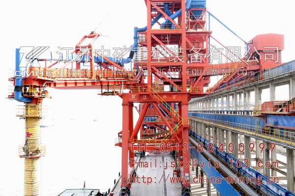 直線軌道式裝船機有粉料裝船機和散料裝船機,粉料裝船機主要用于散裝水泥、粉煤灰等粉狀物料裝船,而散料裝船機則主要是用于水泥熟料裝船,也可用于塊粒和粉料相混合的物料裝船。行走式裝船機在裝船時僅在軌道上作前后移動行走,可在裝運船只的橫向位置上對位或是布料。